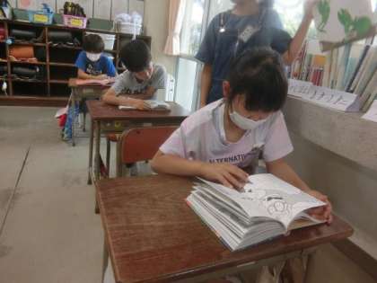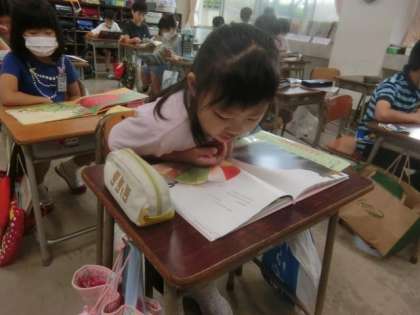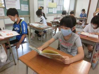 2年生教室の朝。読書タイムです。