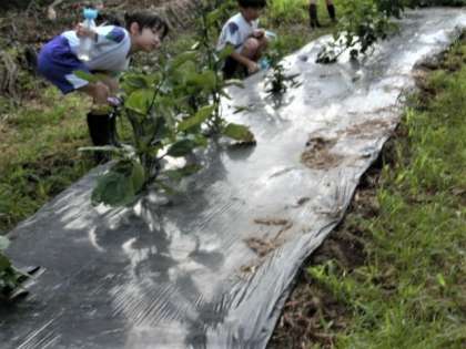 今日も、農園は、2年生の足跡でいっぱいです。