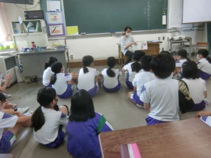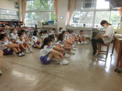 朝の読書タイム。3年生は、担任による読み聞かせに耳を傾けていました。