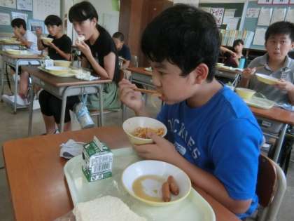 今日の食材には、枝豆やキュウリ、ナス、ズッキーニなど、夏野菜がいっぱい。栄養満点です。