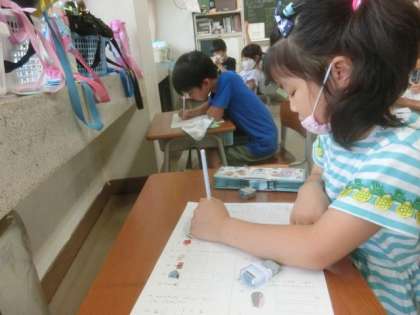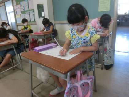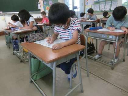 静かに机に向かう1年生。