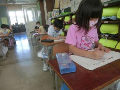 まとめのテストと向き合う1年生。がんばっています。