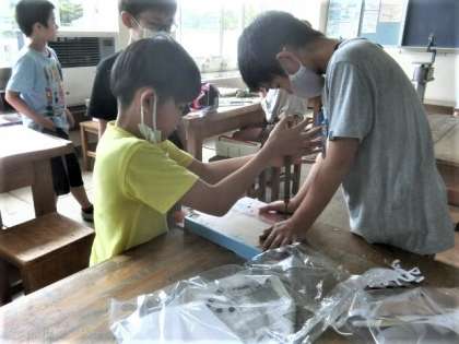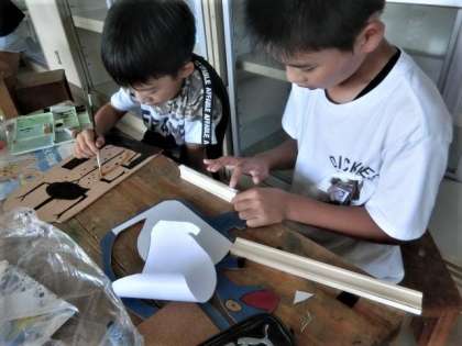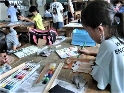形や色を吟味しながら、丁寧に作業を進める5年生。