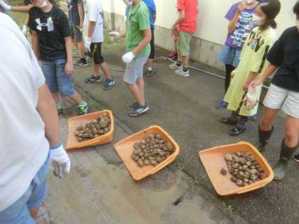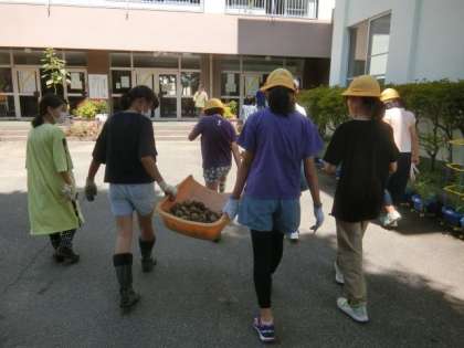 お子さんが持ち帰ったジャガイモ。ご家庭で、お召し上がりください。