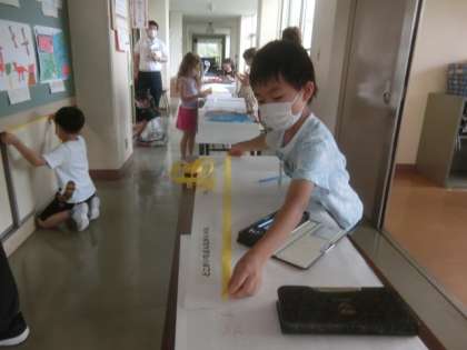 8月3日(月)1年生 長さの比べ方を学ぶ1