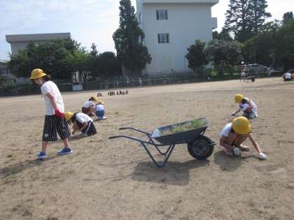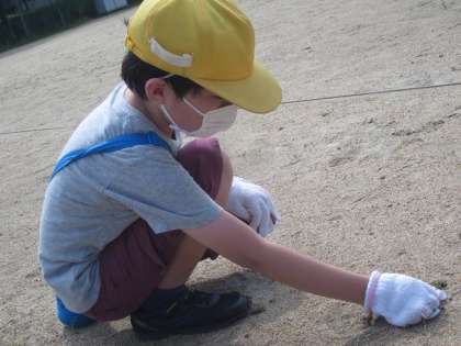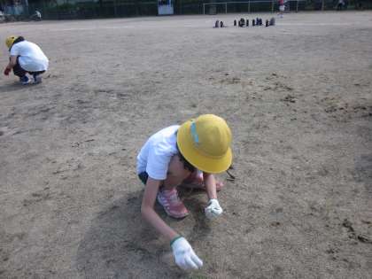 夏休み前に、グラウンドの除草と石拾いをしました。二人とも、とてもがんばりました。
