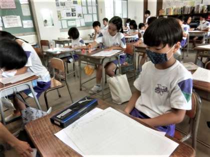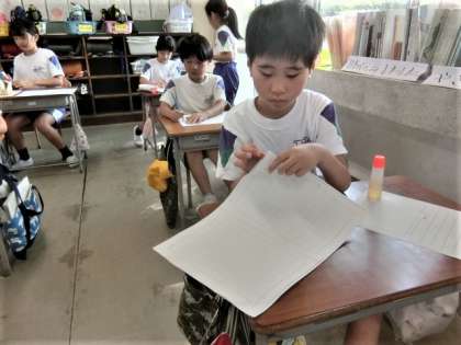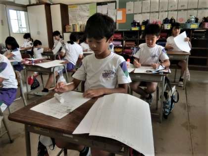 2年生の国語の学習。「あったらいいな。」と思う物を紹介する準備をしています。