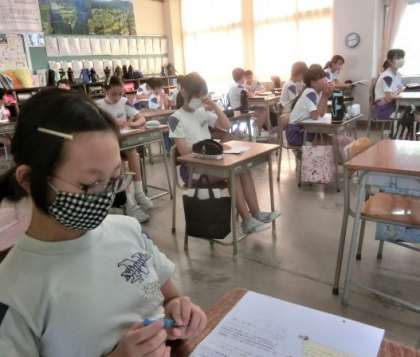 テストでつまずいた問題に注目し、再挑戦する5年生。