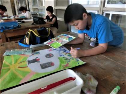 5年生は、防火ポスターを完成させようと、いっしょうけんめいです。