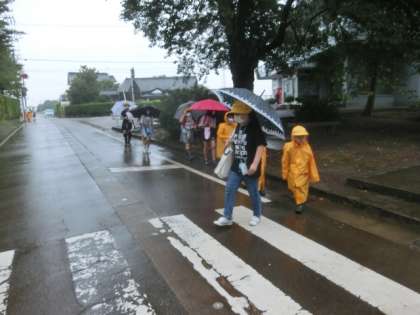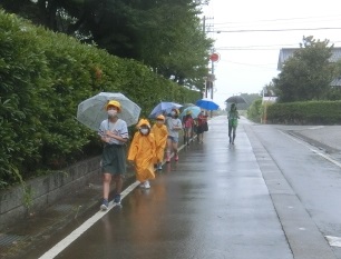 1学期最後の登校。あいにくの雨天でしたが、おかげさまで、今日も、子供たちは無事登校しました。
