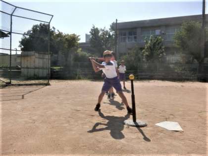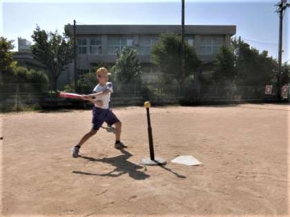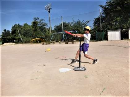 6年生の体育科の学習。フルスイングしました。