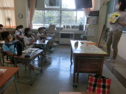 4年生教室。英語専科教員の指導のもと、今日も、英語に親しみました。