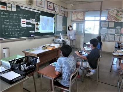 6年生教室。外国語科の学習中。
