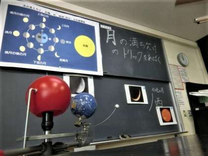 6年生は、理科室で、月が満ち欠けするトリックにモデル実験を通して迫りました。