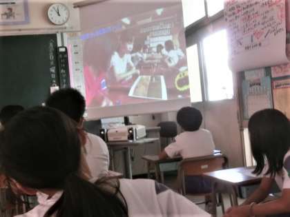 4年生の理科学習。ICT機器を使って、雨水が土地にもたらす事象について学んでいます。