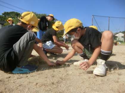 朝活動の時間に、みんなでグラウンドの除草作業をしました。