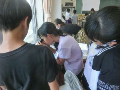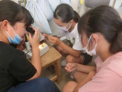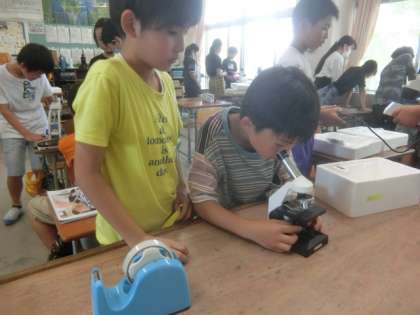 5年生は、自分で花粉を採集し顕微鏡で観察しました。