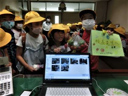 2年生が、野菜づくり支援の礼状を手にして校長室にやってきました。