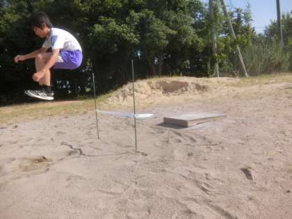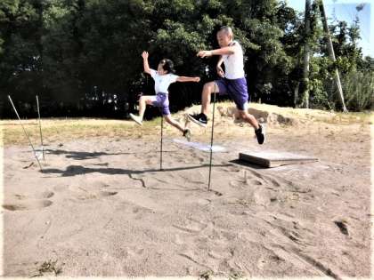 6年生、今朝も、記録会に向けて、ボール投げと走り幅跳びの技を磨きました。