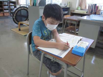 算数科の学習の様子。丁寧に書くように気を付けています。