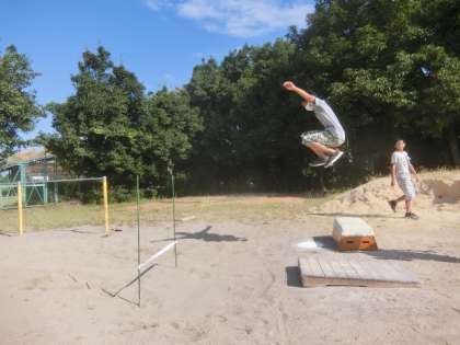 今朝も、「狙って高く投げる」「鋭く踏み切って高く跳ぶ」を意識して、20分間、汗を流しました。