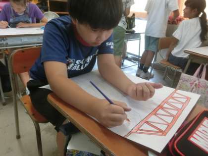 水彩絵の具、色鉛筆、マジックと、自分の表現に適した物を選んで描いているようです。