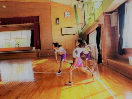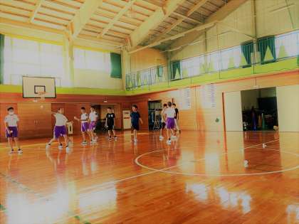 朝の雨でグラウンドコンディションがよくなかったので、体育館で練習しました。
