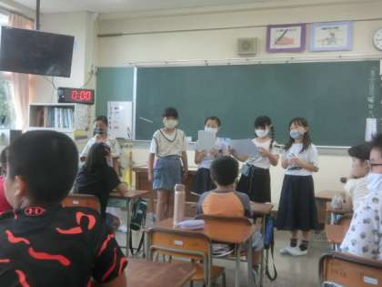 4年生教室では、この後に行うスポーツ活動についての説明をしていました。