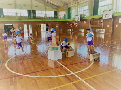 攻める側と守る側に分かれて、全員が運動できるように工夫されています。