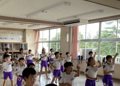音楽室で、踊る5年生。気持ちが入っています。
