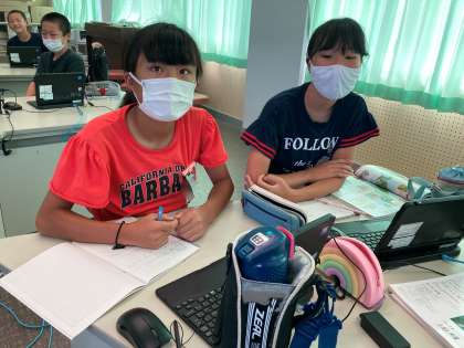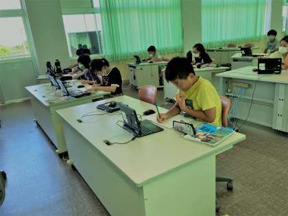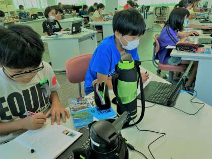 コンピュータ室の6年生。パソコンで歴史学習をしています。