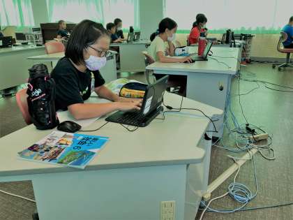 パソコンで、源平の合戦など、平安時代の終わり頃の情報収集をしているようです。