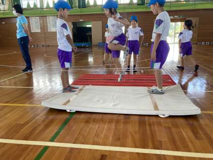 高さにチャレンジしたり跳び方を変えたりして、グループごとに運動の幅を広げています。