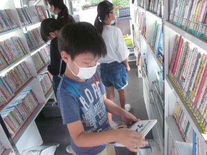 自動車文庫来校日。読みたい本と出会えてよかったです。