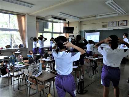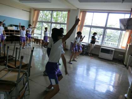 5・6年生が合同で、団パフォーマンスの練習をしています。