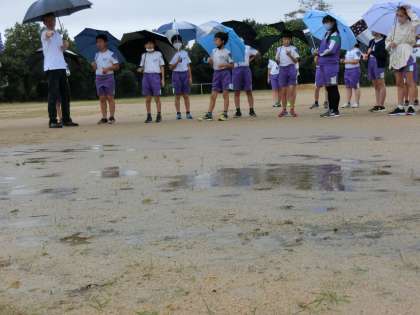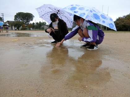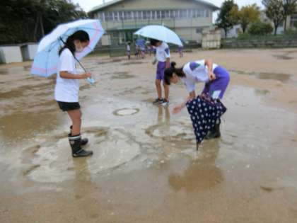 雨天。浸食、運搬、堆積の学習をするには好日。