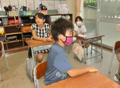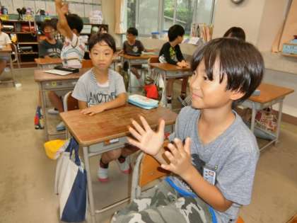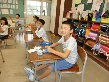音楽を聞きながら、手拍子等を楽しむ2年生。
