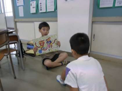 二人で、おひさま級の紙芝居を読み聞かせしました。