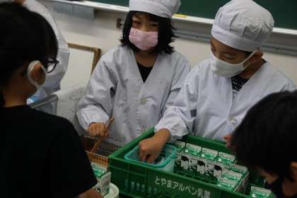 今週は給食当番。身支度をしっかりと調えて活動しました。