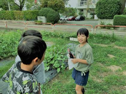 農園で、作物を収穫したりバッタやコオロギを捕まえたりして過ごす2年生。