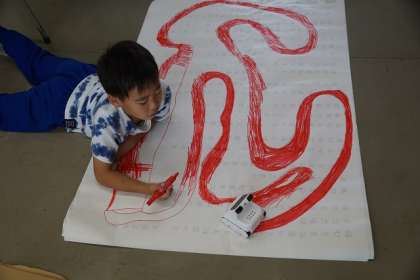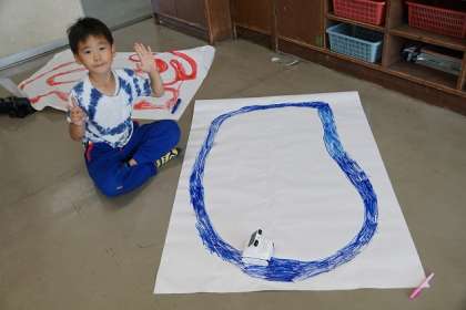 今日は、赤色と青色のコースを自分で作りロボットを動かしました。