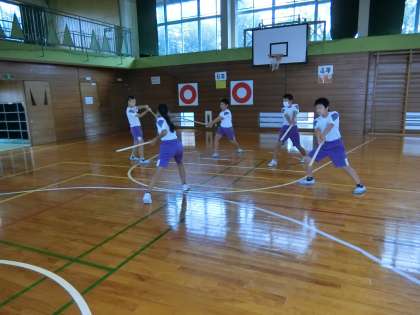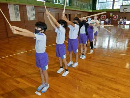 発表会に向けて、剣舞の表現を磨く5年生。