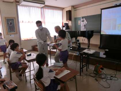 4年生は、バクテリアの力を借りて水を浄化していることを知り驚いていました。