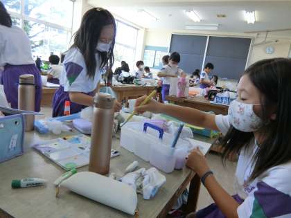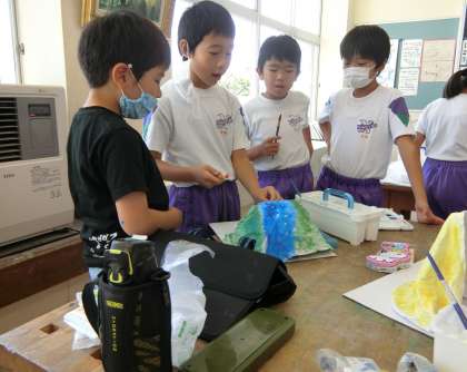 作品に色を置いた後に、紙粘土を加えてさらにグレードアップさせるのだそうです。