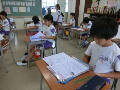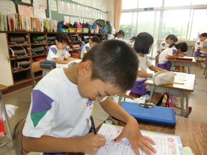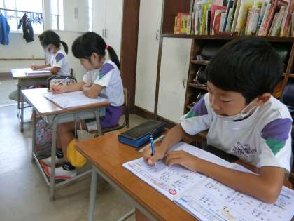 筆算のドリル学習に励む2年生。