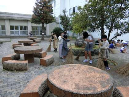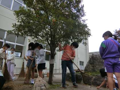 今朝は、4年生だけでなく、他の学年も中庭清掃に協力してくれました。