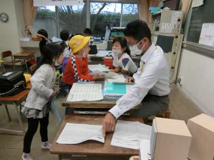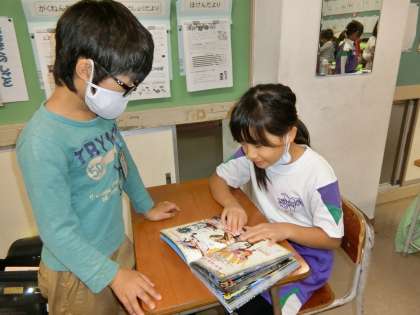 朝の1年生教室。提出物を出したり読書をしたりして、始業の時間を待っています。