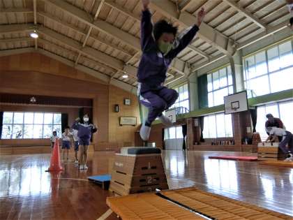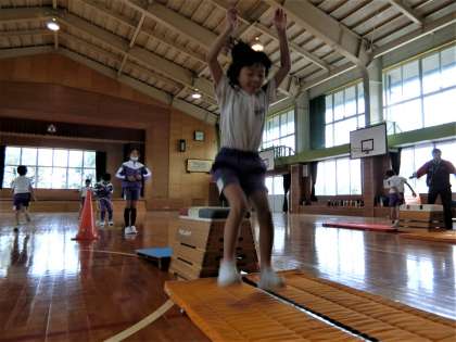 富山市役所と体育協会から講師をお招きして、跳び箱教室を開催。