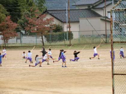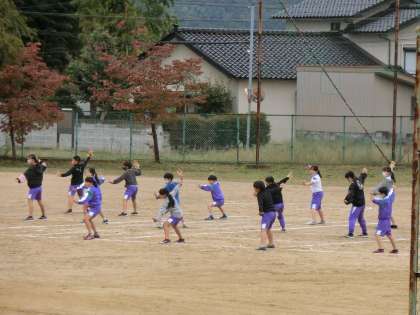 グラウンドの5年生。遠くから見ても、動きが調和していることが分かります。