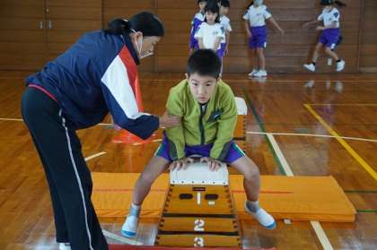 外部講師から跳び箱運動を学びました。一生懸命に取り組んでいました。